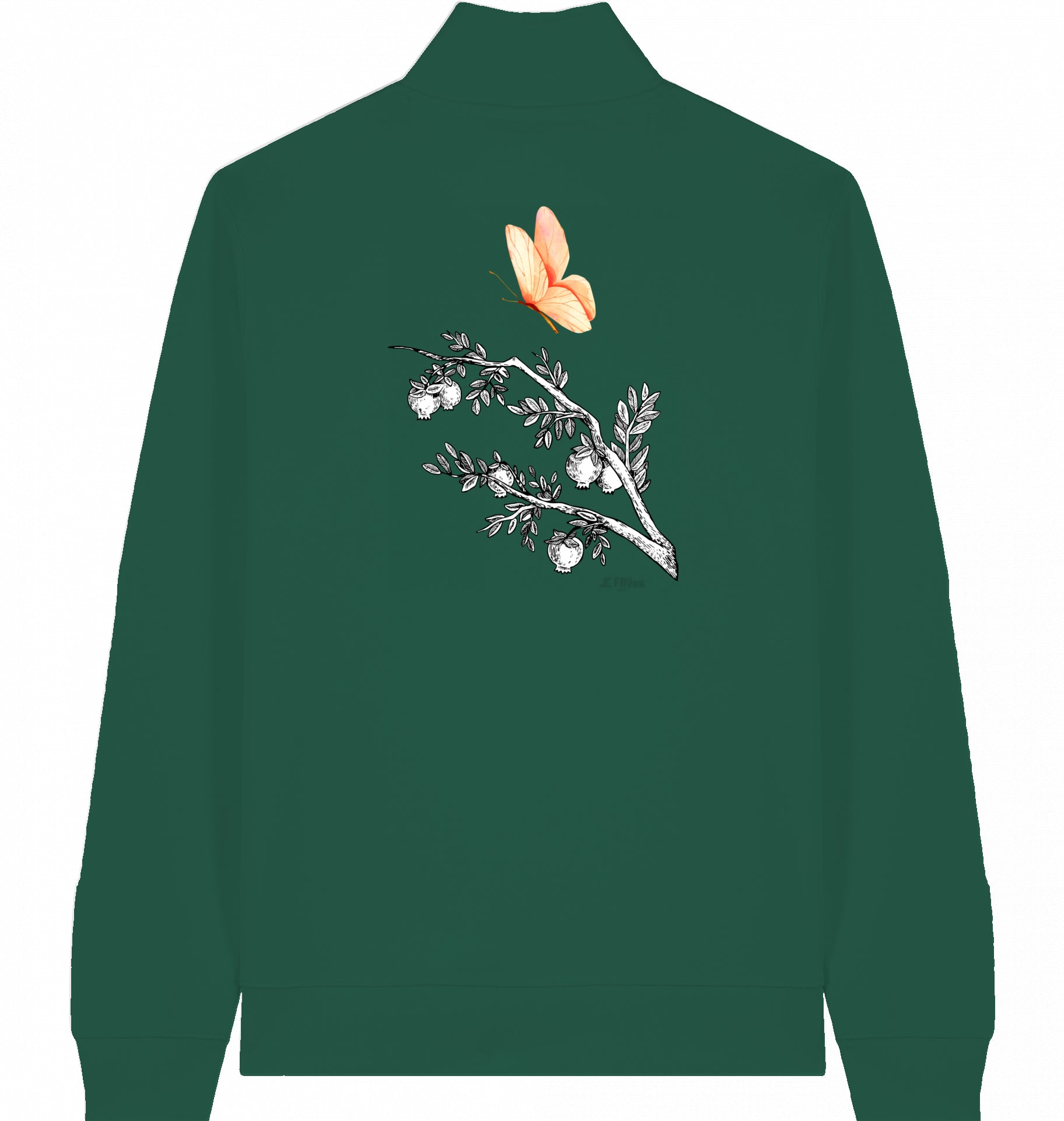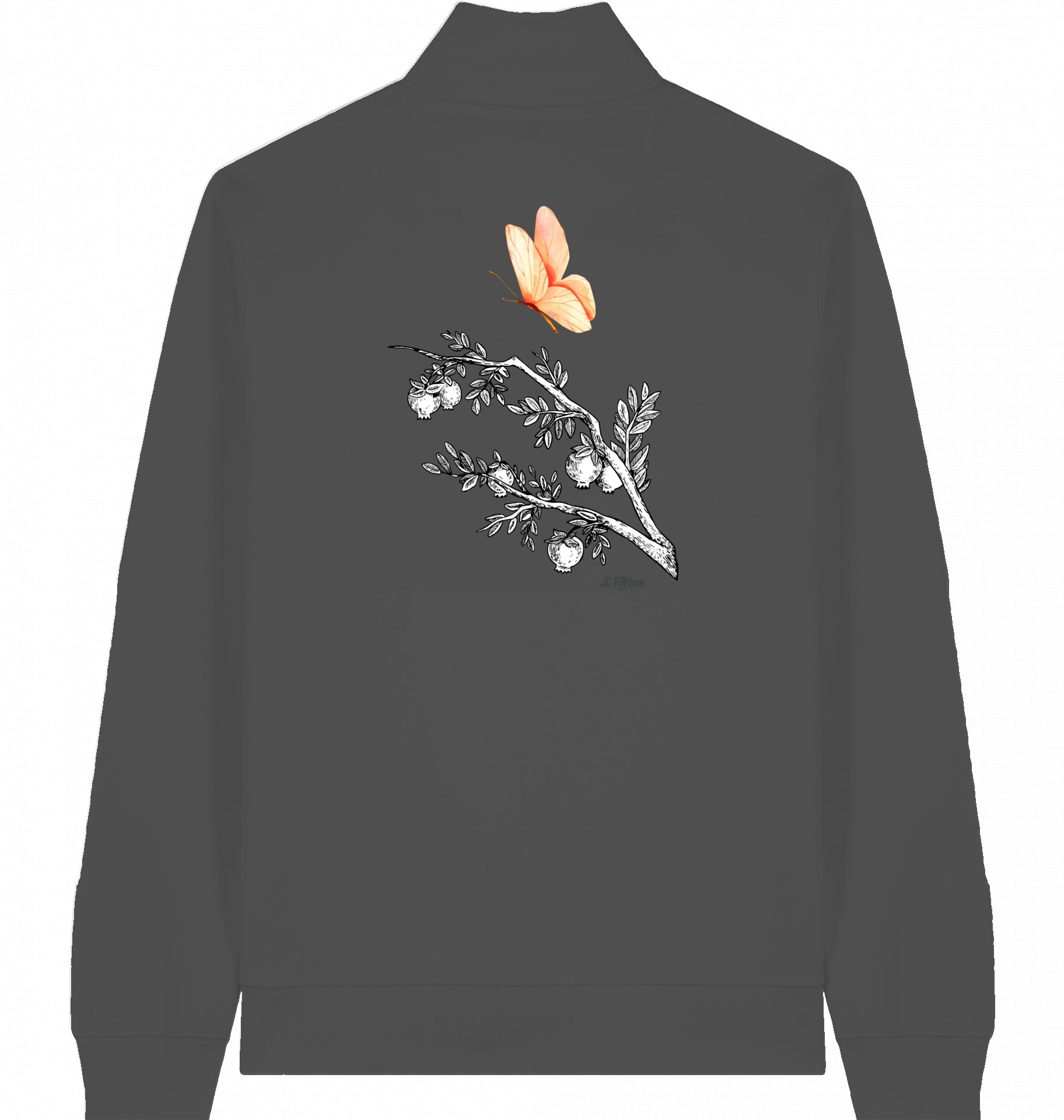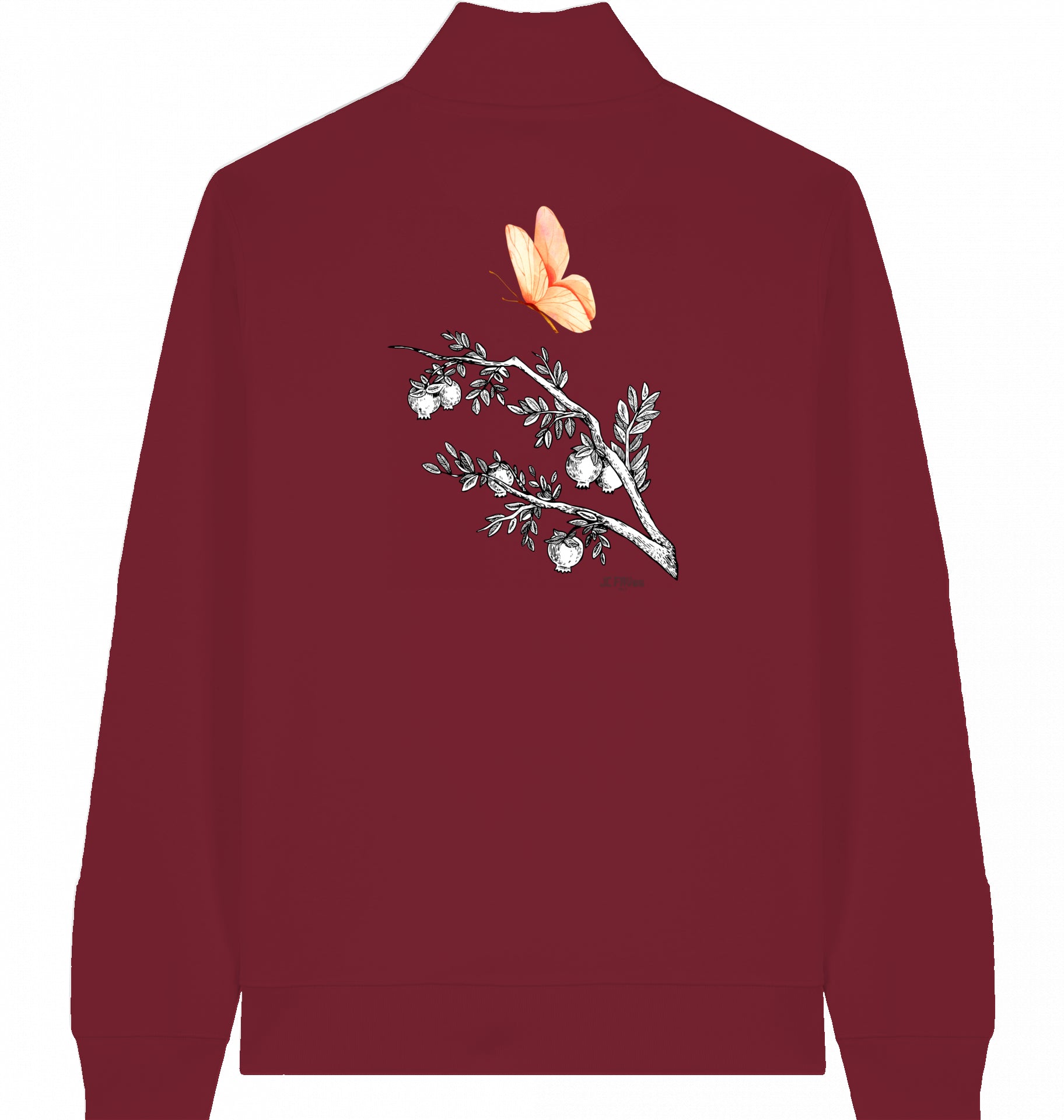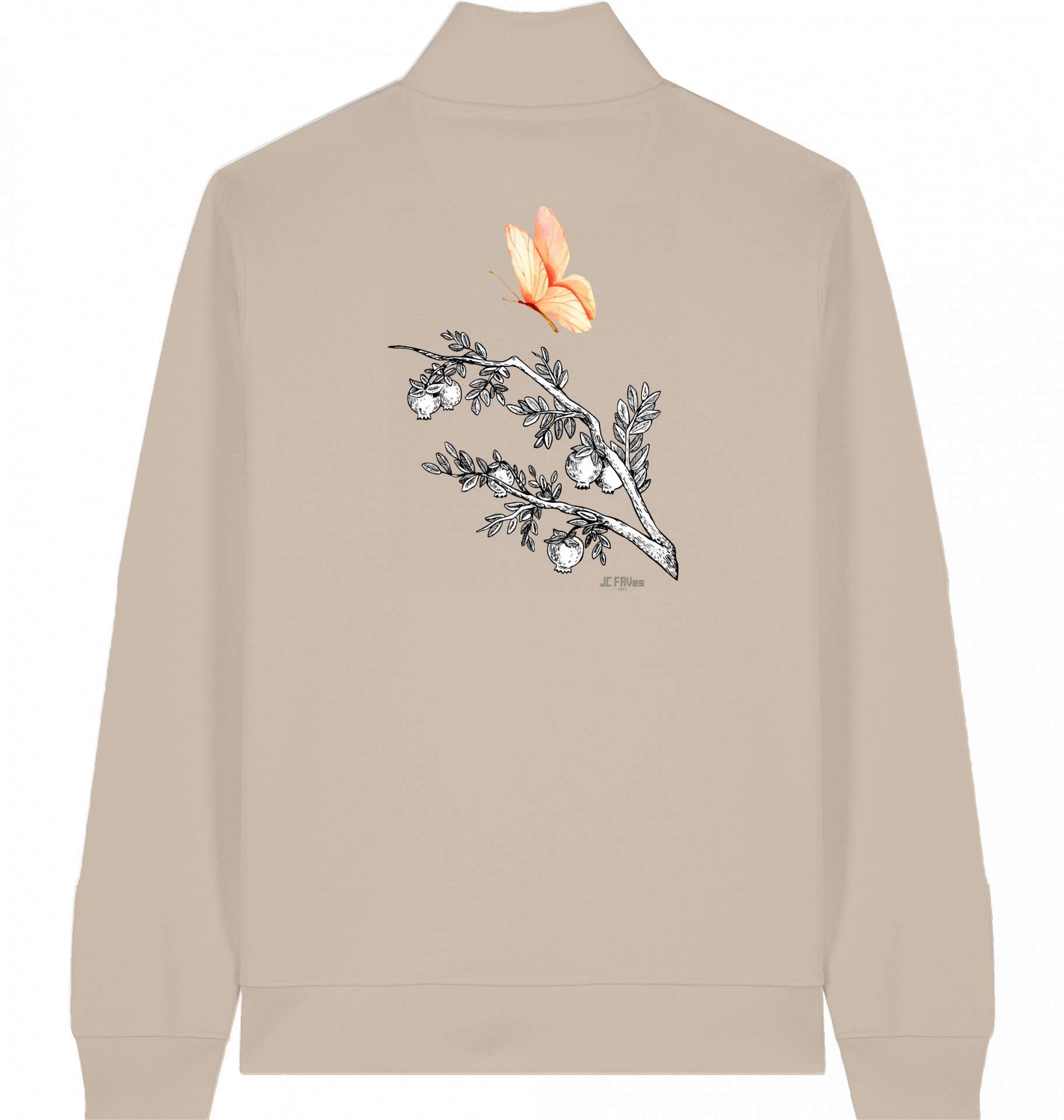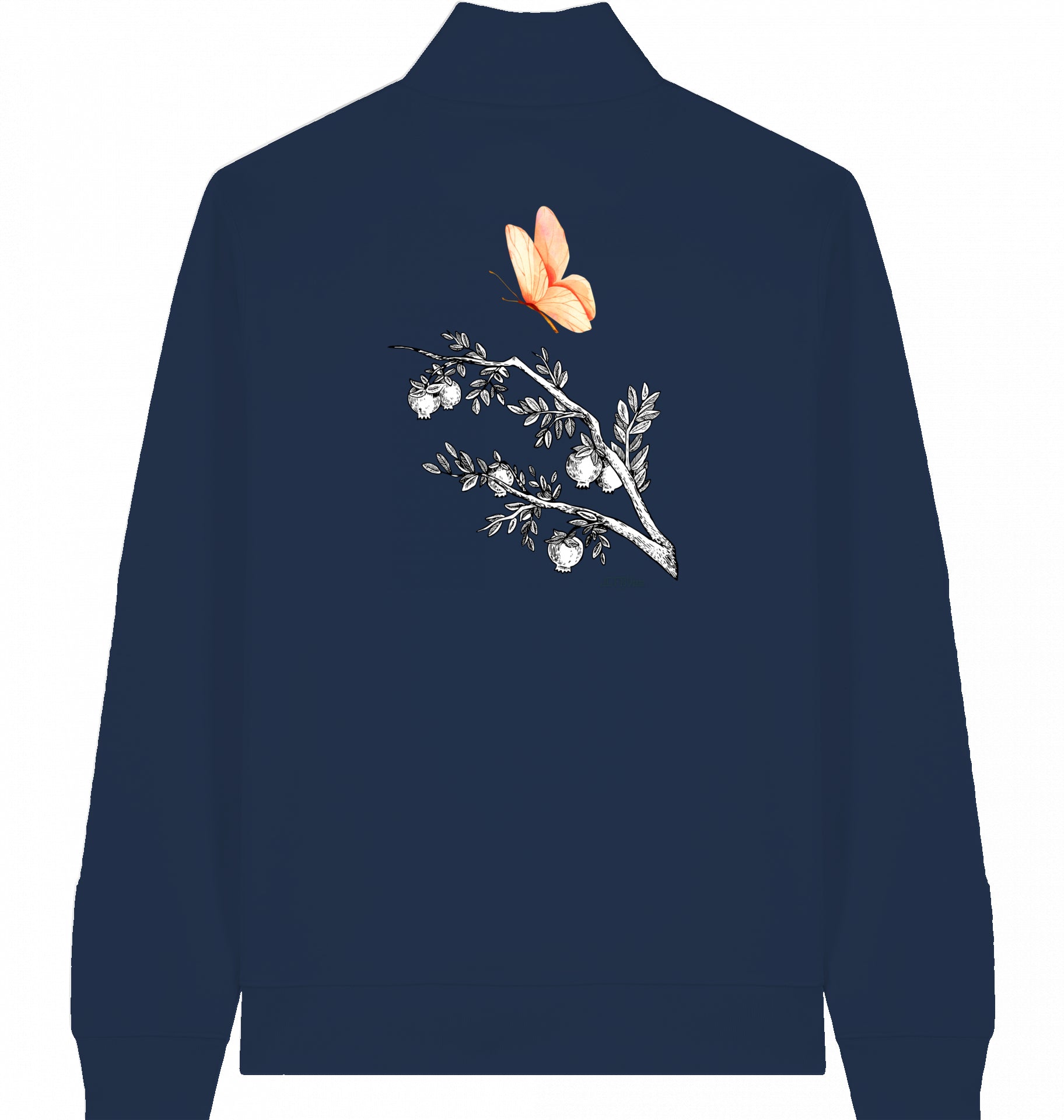 rosa Schmetterling - Veganer Sweater mit Reißverschluss aus Baumwolle (Bio-Baumwolle) – nachhaltig & funktional